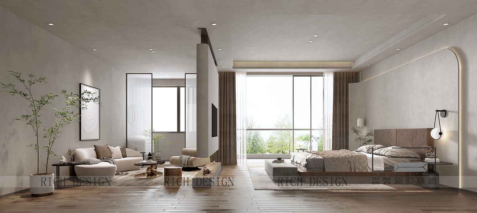 侘寂之美建筑不喧,自有聲??臻g不言,自從容。侘寂美學所描繪出的溫潤靜美,是一種干凈、純粹兼具生命力的大美,無需華實的筆墨。簡樸至極,亦是高貴?!皹I主所向往的生活,純粹干凈、直率分明,浸潤著藝術的高雅氣質與質樸格調。而這種“高雅質樸”與業主自身的信仰訴求相輔相成。對于設計師而言